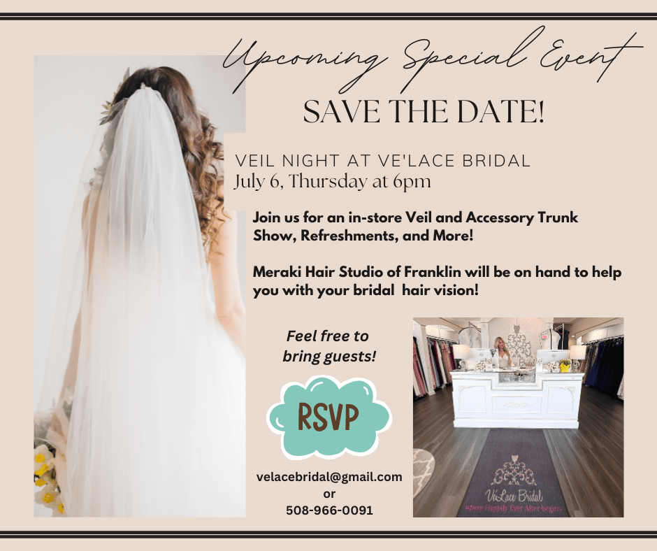 Join us for an in-store Veil and Accessory Trunk Show, Refreshments, and More!